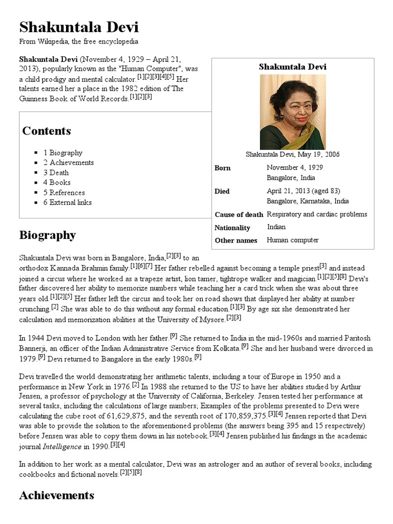 Shakuntala Devi Achievements / Shakuntala devi was an indian writer and mental calculator, popularly known as the human computer.her talent earned her a place in the 1982 edition of the.