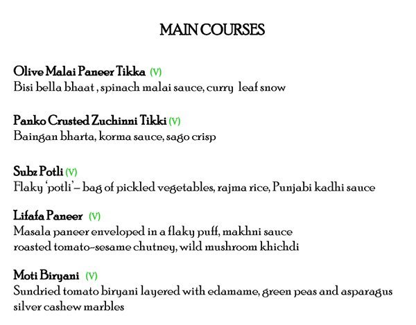 Ziya Oberoi Menu : Vetro serves italian dishes, while indian cuisine can be savoured at ziya.